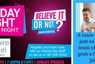 Our weekly pub quiz is held every Monday and starts at 7pm. It is bought to you by Believe It or Not. While a team of 4 to 6 is ideal, a team of 2 works just fine (ask our current champions). Register on the night ... more